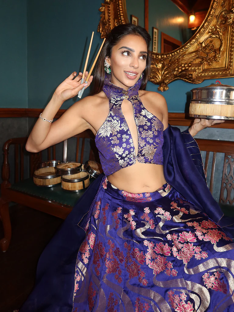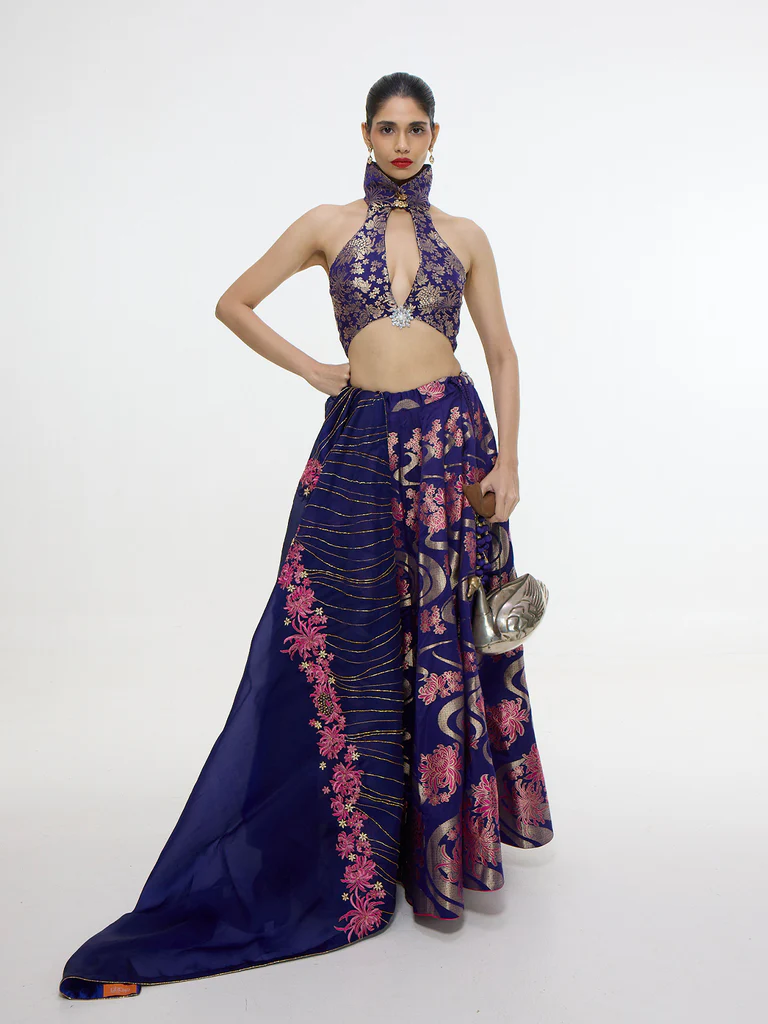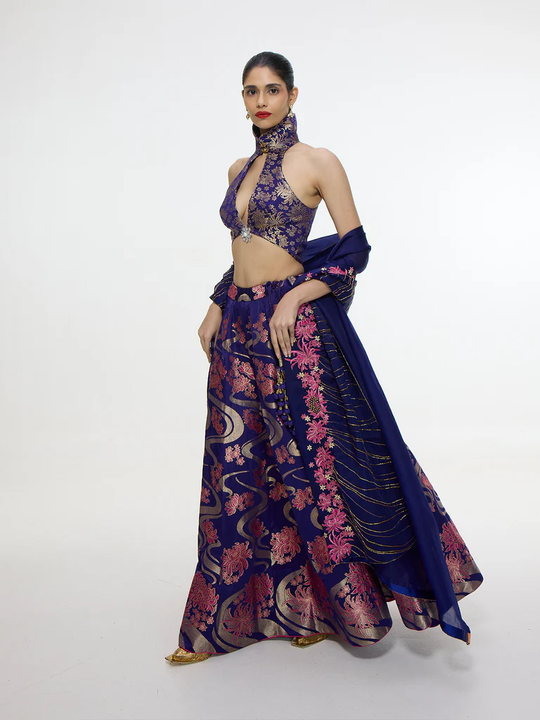 Handwoven Aubergine Kadwa Lehenga Set